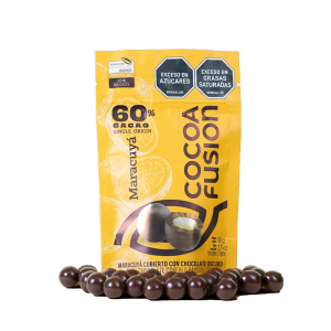 El maracuyá, conocido como la fruta de la pasión, y cubierto con un delicioso chocolate oscuro generan un nuevo y salvaje sabor que deleitará por sus contrastes de sabores.